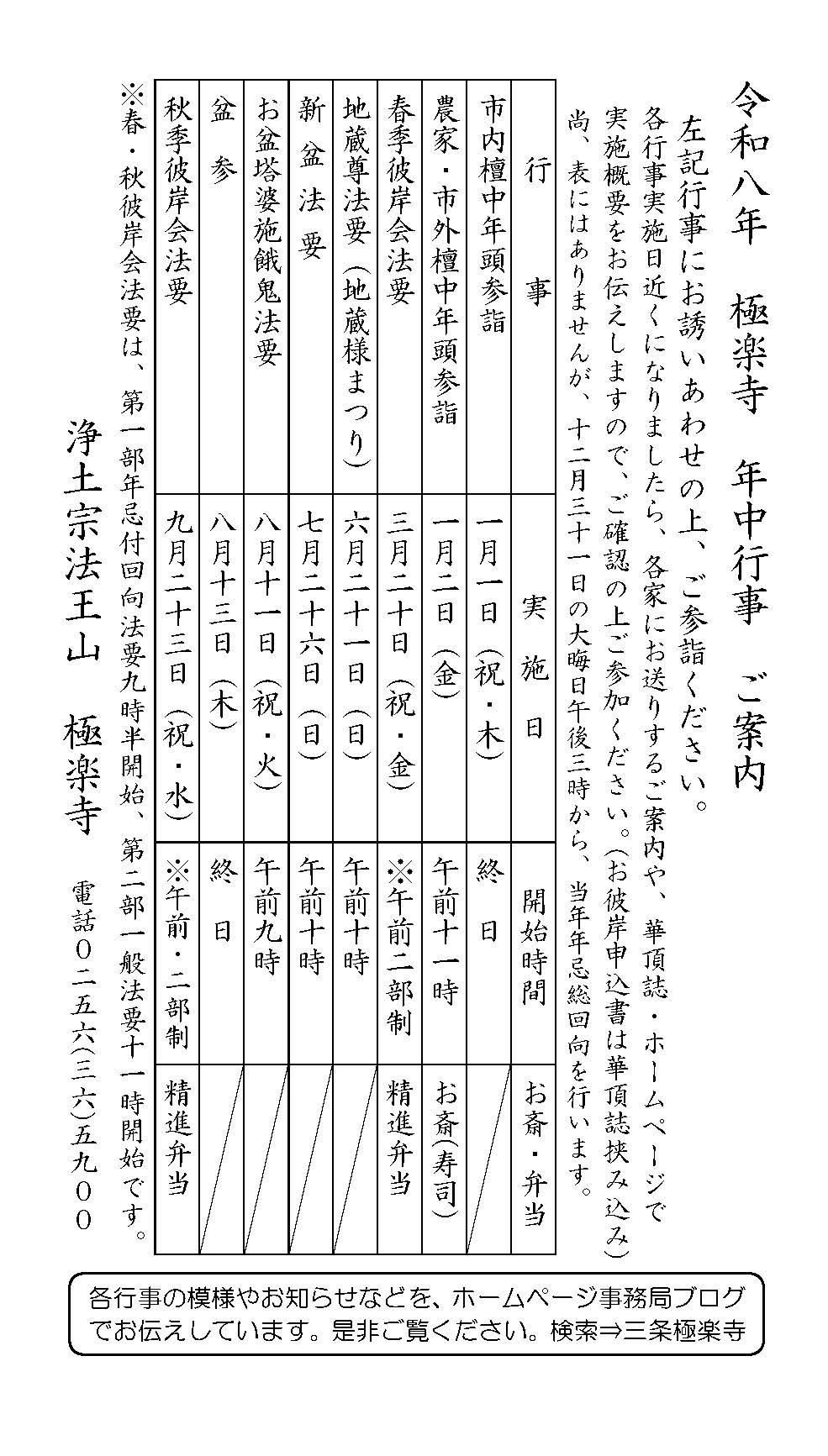 令和8年 極楽寺年中行事