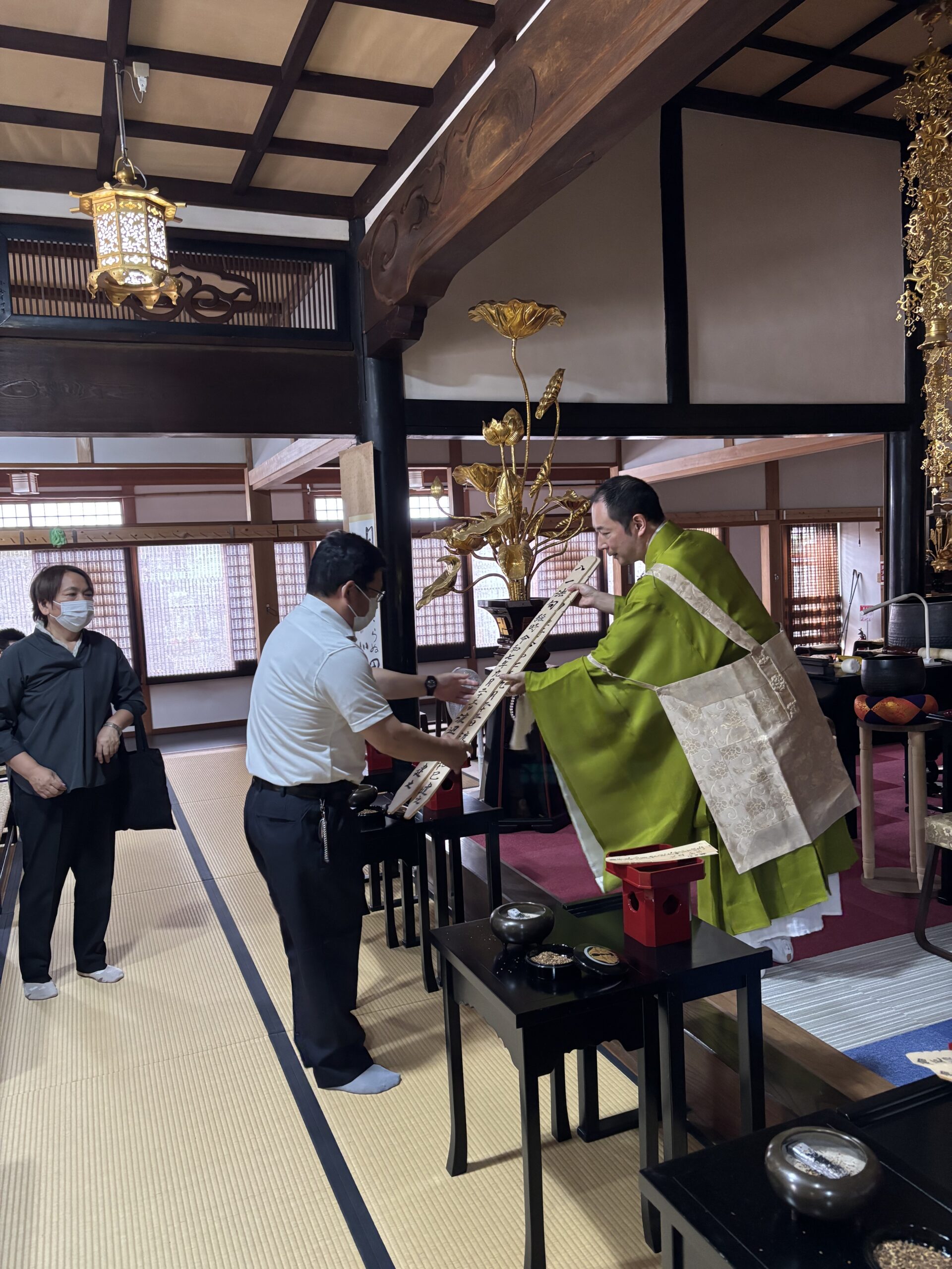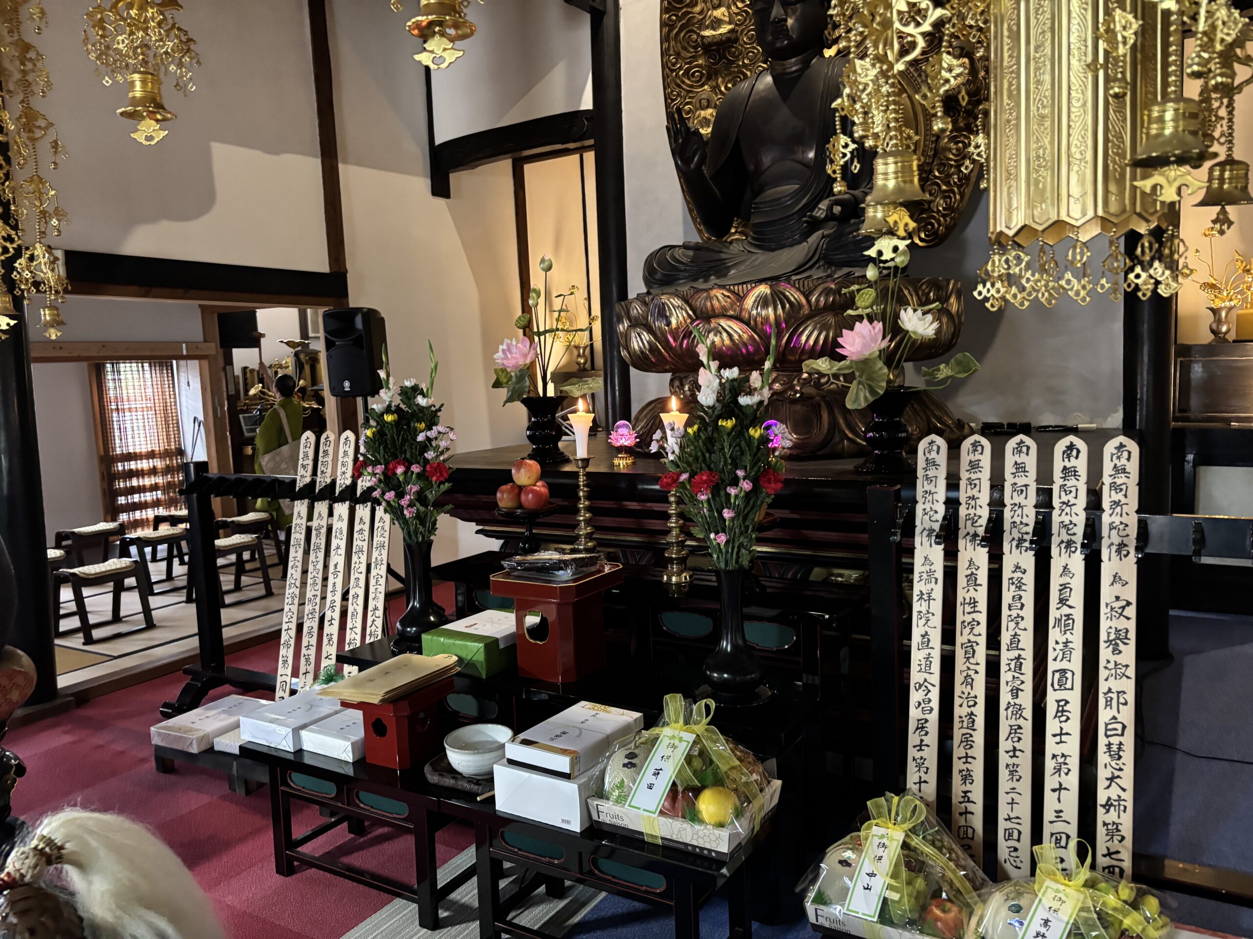 一部法要が終わり、堂内の設えを変えて2部法要の準備を行いました。