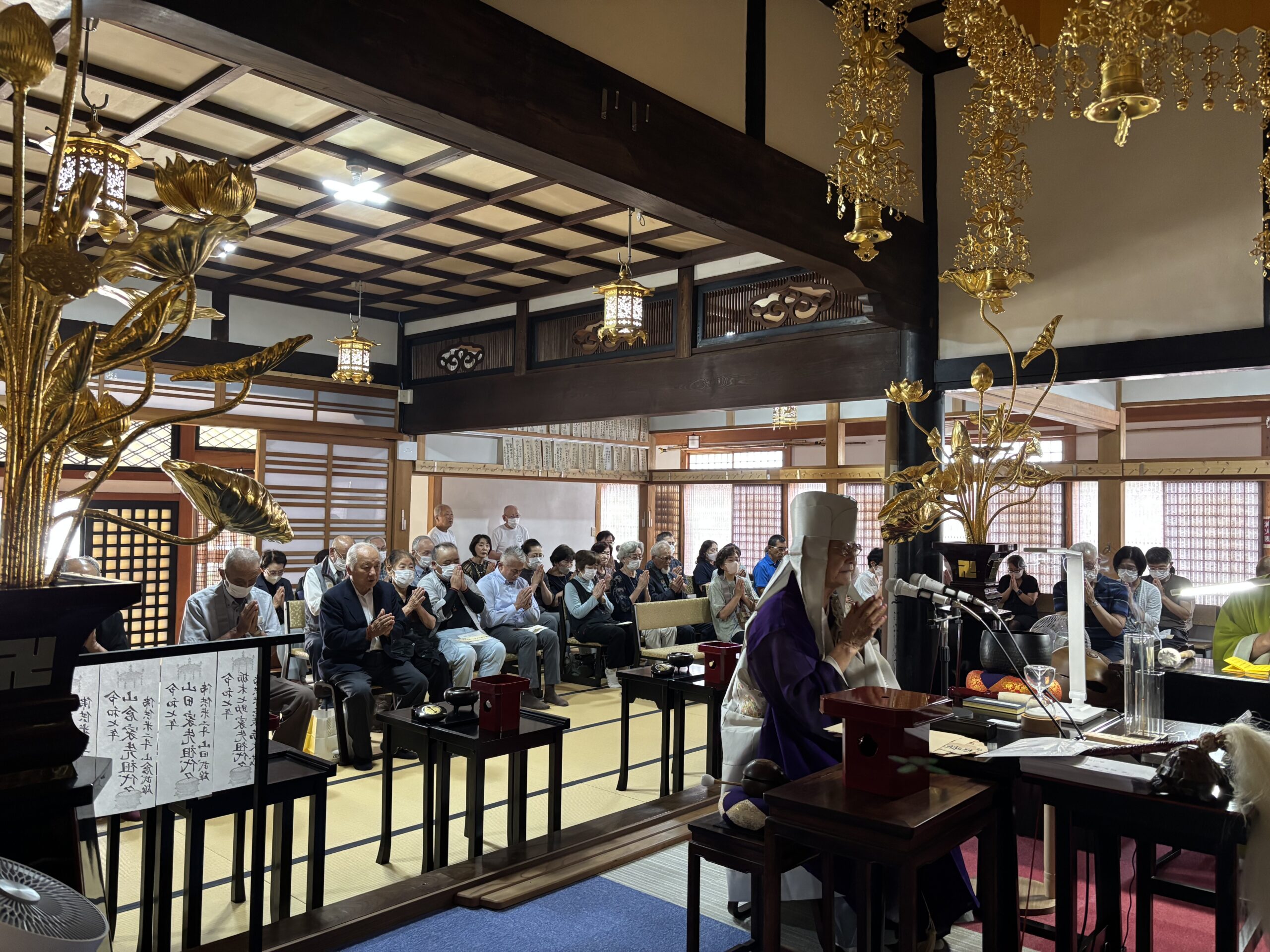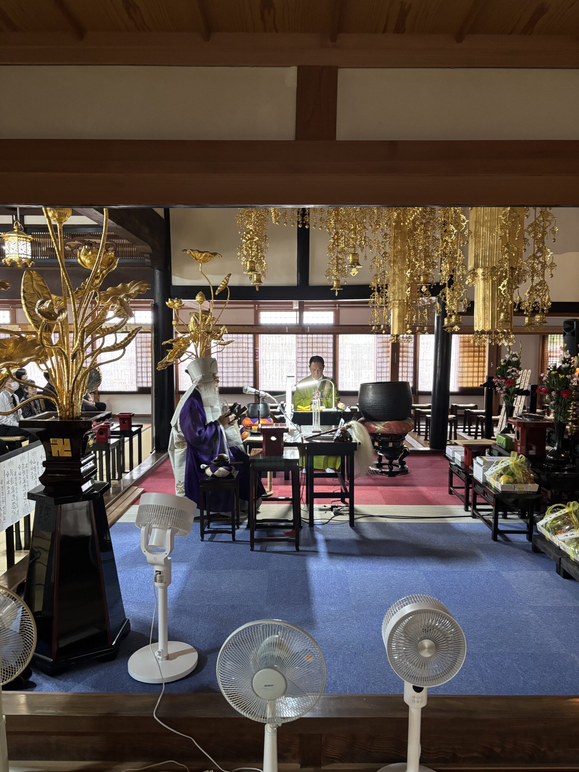 法要は、住職と副住職の二人で務めました。暑さの予報もあったので、扇風機がスタンバイしていましたが、とても過ごしやすく必要ありませんでした。