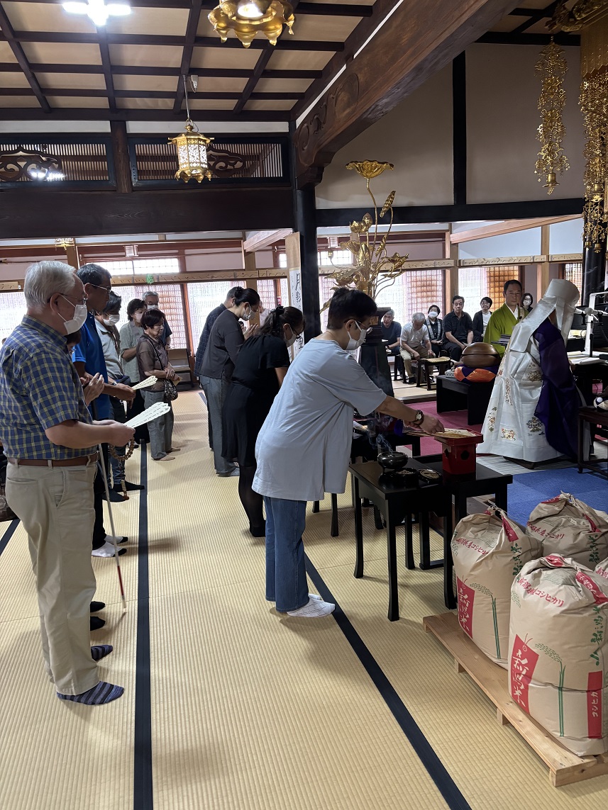 秋彼岸法要に於いて、佛供米のご回向を最初に行い、一年ご苦労されたお米をお供えくださったことに感謝申し上げております。