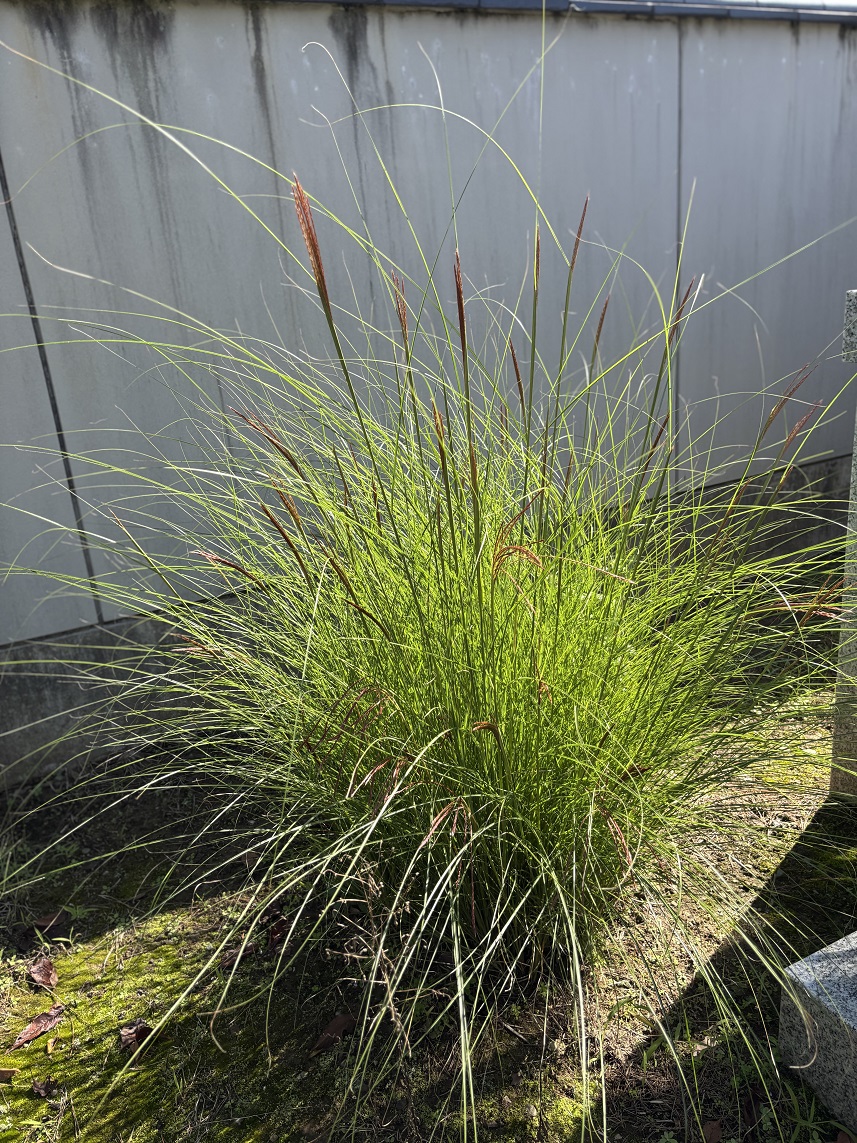 永代供養墓裏の糸ススキにようやく海老茶色の穂が出始めました。来月初旬の樹木冬囲いの頃には刈り取られるのですが、少しばかり秋の風情を感じさせてくれると思います。