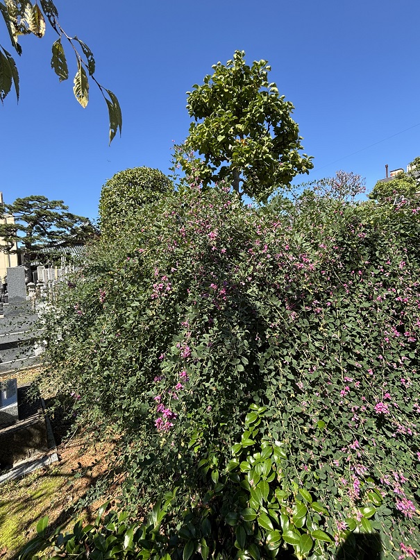 萩は日当たりのいい場所の花は終わり、塀の陰になり少し日陰になっていた場所に最後の花が咲いています。