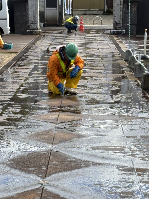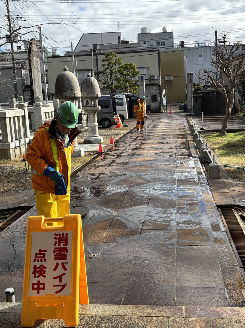 本日は、冬の準備作業の最後、消雪パイプノズル調整をシミズエンジニアリング様に行っていただきました。